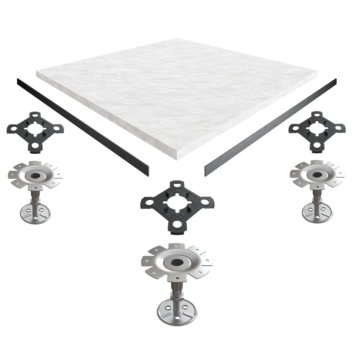 Met een nominale belasting van 3 kN (veiligheidsfactor 2,0) en een klasse A doorbuiging, voldoet het systeem ruimschoots aan de technische eisen volgens DIN EN 12825. Dit maakt het geschikt voor gebruik in kantoren, datacenters en technische ruimten. De modulaire opbouw met verzinkte stalen onderstellen zorgt ervoor dat de vloer eenvoudig is aan te passen of te onderhouden.