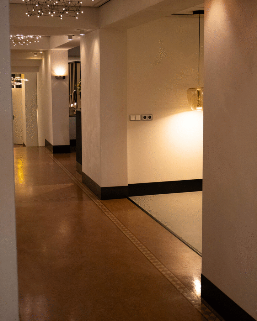 In het prachtige pand van Quasar Holland, specialist in exclusieve verlichting en design, hebben wij de vloerafwerking een compleet nieuwe uitstraling mogen geven. Het doel was om een frisse en eigentijdse look te creëren, maar wel met respect voor de bestaande elementen in het gebouw.