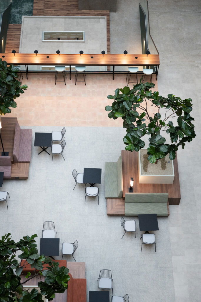 The Den is ontworpen als een inspirerende werkomgeving waar ontmoeten, werken en ontspannen samenkomen. Om die visie te ondersteunen, is gekozen voor een combinatie van duurzame PVC-vloeren, hoogwaardige tapijttegels en een strakke gietvloerafwerking. De verschillende zones vloeien naadloos in elkaar over en dragen bij aan een dynamische, open sfeer waarin functionaliteit en comfort in balans zijn.